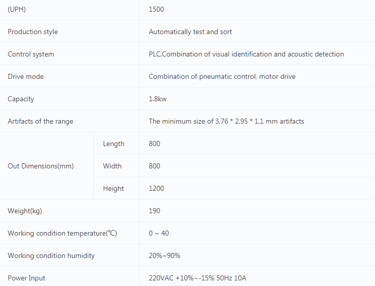 通過振動(dòng)盤和線性給料器傳送零件,然后經(jīng)過機(jī)器視覺系統(tǒng)檢測,被機(jī)器人抓取,自動(dòng)連接到測試系統(tǒng),電聲軟件將收集和分析測試數(shù)據(jù),然后將零件分類放入不同的箱子。
