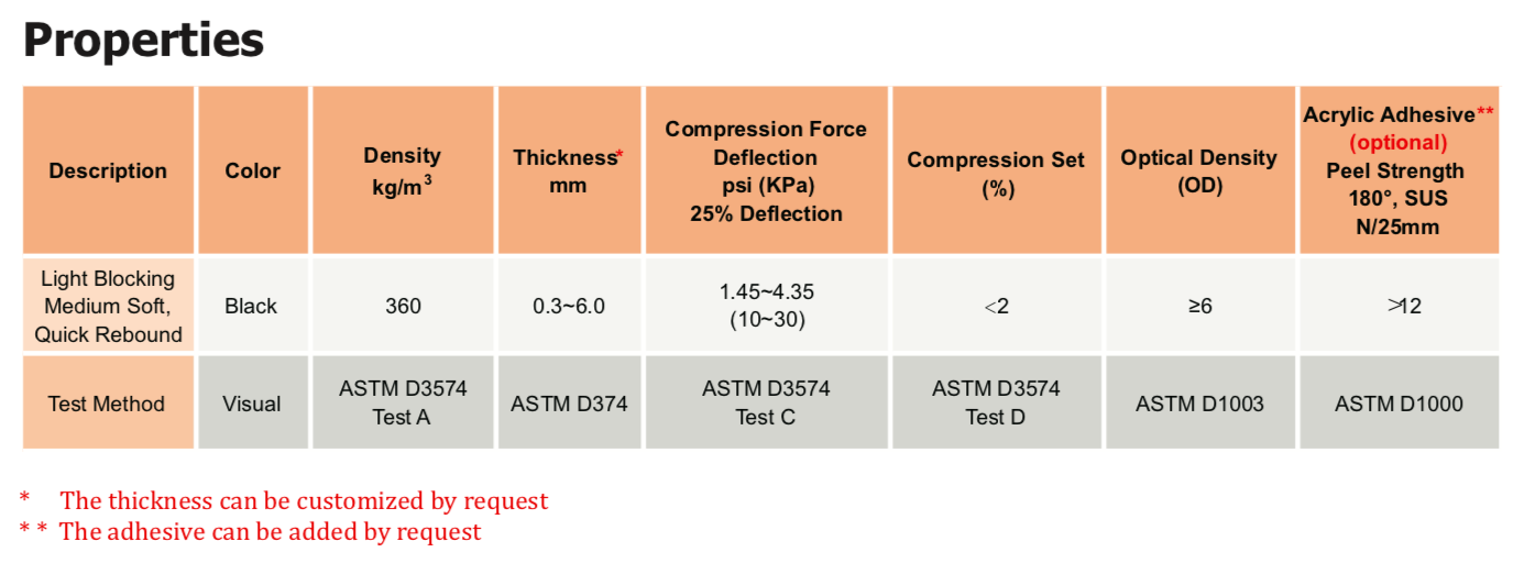 TM PF-S3B系列泡棉是一種中等柔軟、快速回彈的泡棉,帶有黑色PET基底,用于電子設備應用中的遮光、緩沖、保護性密封和長期間隙填充。PF-S3B系列泡棉具有極低的壓縮永久變形率、高密封性能和優(yōu)異的沖擊吸收性能。" />